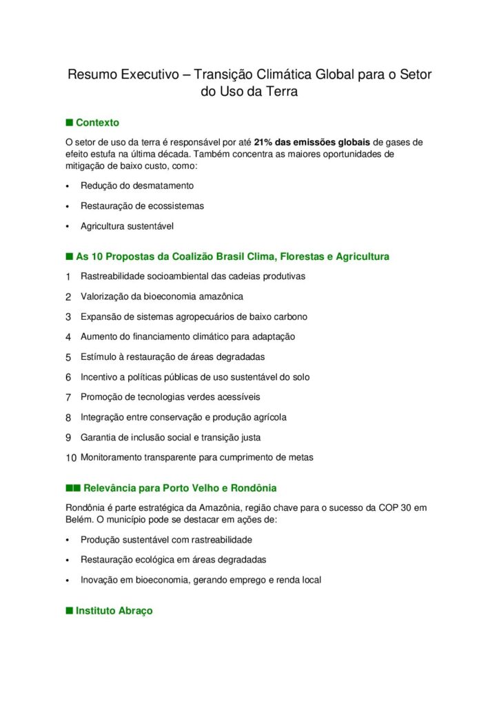 O Instituto Abraço, organização da sociedade civil de Rondônia, esteve presente nas articulações da Coalizão, levando a perspectiva amazônica para o debate. “Nossa participação reforça a importância de valorizar soluções locais, com base no uso sustentável do solo e na inclusão das comunidades amazônicas nas estratégias de mitigação climática”, destacou a coordenação do Instituto.